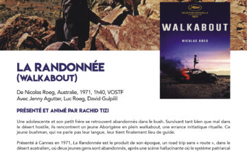 Séance le Mardi 24 Janvier à 20h au Centre Rabelais – Montpellier. Billetterie : https://www.helloasso.com/associations/chretiens-et-cultures/evenements/la-randonnee-walkabout