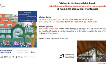 L’église Saint Esprit à Montpellier sera ouverte les samedis et dimanche 18 et 19 octobre 2025 (Journées de l’Architecture) des visites guidées auront lieu le dimanche. Venez découvrir ou mieux connaître cette église