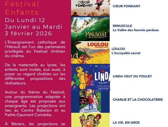RETOUR SUR LE FESTIVAL CHRÉTIEN DU CINÉMA ENFANTS Lors de notre festival enfants, nous nous sommes mis A table : il a commencé le lundi 12 janvier à Montpellier s’est clos le mardi 3