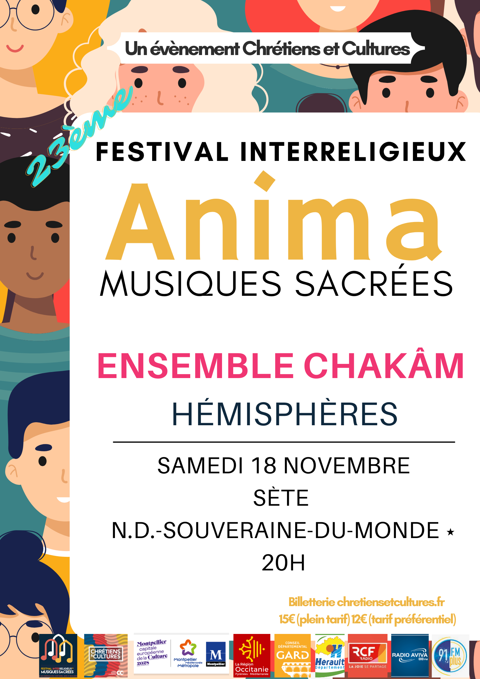 Dans le cadre du Festival ANIMA, Festival Interreligieux de Musiques Sacrées. SAMEDI 18 NOVEMBRE 2023 – 20H SÈTE : ÉGLISE NOTRE-DAME-SOUVERAINE-DU-MONDE Chakâm, du nom d’une ancienne forme poétique, a été formé en 2014