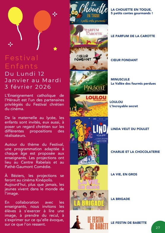 Les établissements catholiques de Montpellier et de la Métropole participent ainsi depuis plus de 25 ans à la grande aventure du Festival et retrouvent chaque année avec grand plaisir à la sélection proposée.
